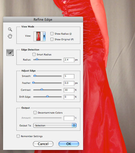 (Quick Selection Tool), чтобы создать выделение вокруг изображения модели. Как только вы создали выделение, идём Выделение – Уточнить край (Select>Refine Edge) для создания более точного выделения. За дополнительной информацией по выделению объектов, вы можете ознакомиться в данном уроке.