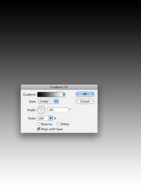 В настройках градиента, установите тип градиента Линейный (Linear), Угол (Angle) -90, цвет градиента чёрно-белый.