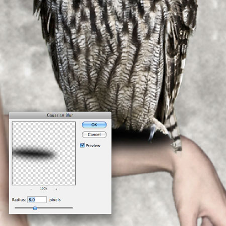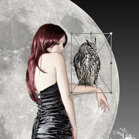 Проведите те же самые действия, которые вы применяли к изображению руки. Вырежьте / сохраните / переместите на рабочий документ / примените масштабирование / отразите по горизонтали. Слой с совой расположите выше слоя с рукой.
