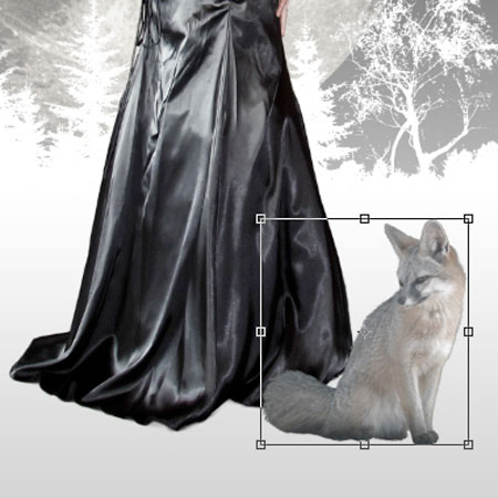 Проведите те же самые действия, которые вы проводили ранее. Вырежьте / примените тримминг / сохраните / переместите на рабочий документ / примените масштабирование / отразите по горизонтали. Слой с лисой расположите выше слоя с моделью.