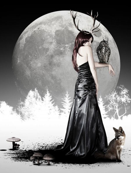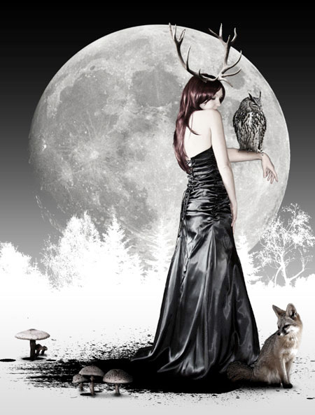 С помощью корректирующего слоя Кривые (curves), проведите коррекцию контраста оленьих рогов. Не забудьте преобразовать данный корректирующий слой в обтравочную маску к слою с рогами.