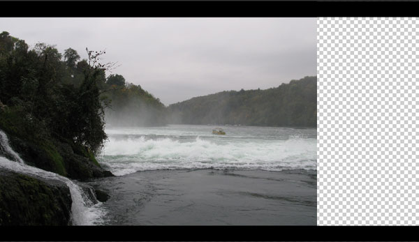 2) Далее, откройте другое изображение реки. Переместите данное изображение на наш рабочий документ, расположив в правой части сцены. Далее, с помощью инструмента Ластик