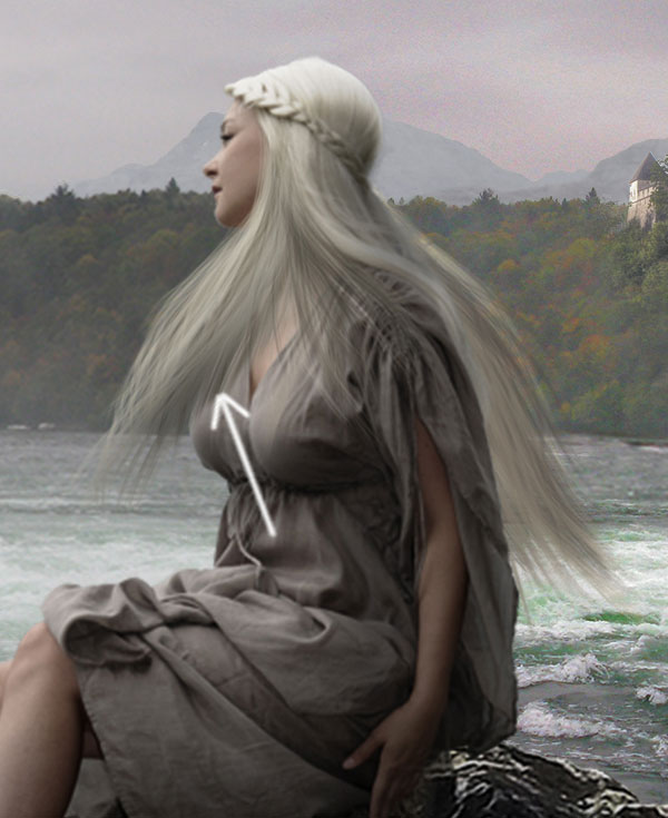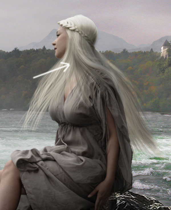 В этом шаге мы нарисуем волосы, развевающиеся поверх шеи спереди.