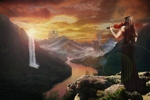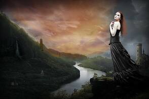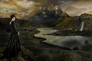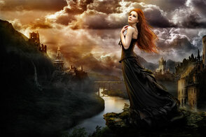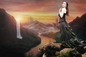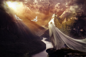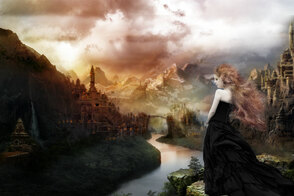 Теперь, добавьте дополнительные элементы к нашему изображению. Это могут быть горы, замки, руины, одним словом всё, что придаст изображению красивый вид. С помощью техники обработки на слой-маске, которую вы использовали в предыдущих шагах, обработайте дополнительные объекты для наиболее лучшего совмещения со всей сценой и не забудьте поменять режим наложения для слоёв с дополнительными элементами на Мягкий свет (soft light) или Перекрытие (overlay).
