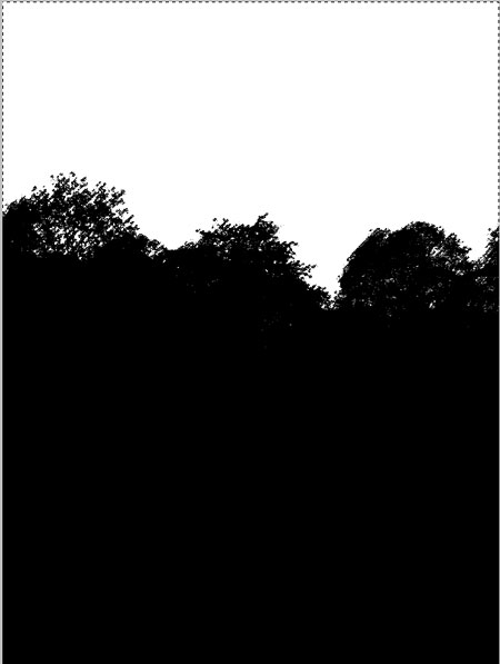 Перейдите в закладку Каналы (Channels). Выберите Синий канал (blue channel), который представляет наибольший контраст между небом и лесом. (Ваше изображение станет чёрно-белым, не переживайте, это так и должно быть!).