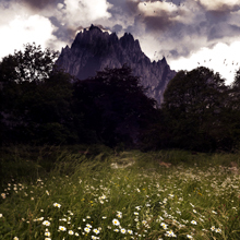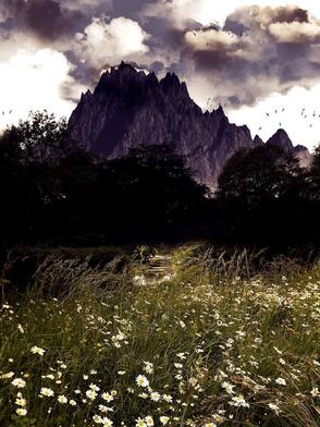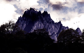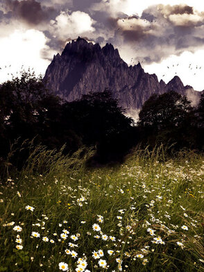 Откройте изображение с горами. Расположите данный слой с горами поверх остальных слоёв.