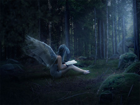 В этом уроке я покажу вам, как создать волшебный лес с прекрасным ангелом, читающим книгу. Вы узнаете, как превратить фотографию с лесом в ночную сцену с лучами света, как создать ангела, путём добавления крыльев к девушке, а также как завершить картину с помощью нескольких заключительных штрихов.