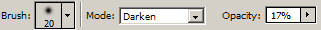 Мягкая кисть, режим наложения "Замена темным", прозрачность 15-20%