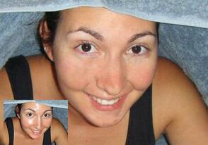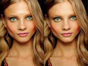 Вот что получилось: пятна я убрала на лбу, на носу, подбородке, но специально оставила на щеке, чтобы показать вам еще один способ.
