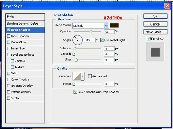 Выделите цветок и примените параметр наложения Drop Shadow (Тень) с настройками, показанными ниже.