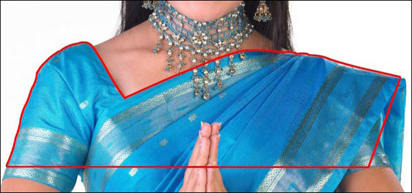 Откройте снова изображение «Ювелирное украшение» и выделите верхнюю часть сари, как показано красным цветом с помощью Pen Tool