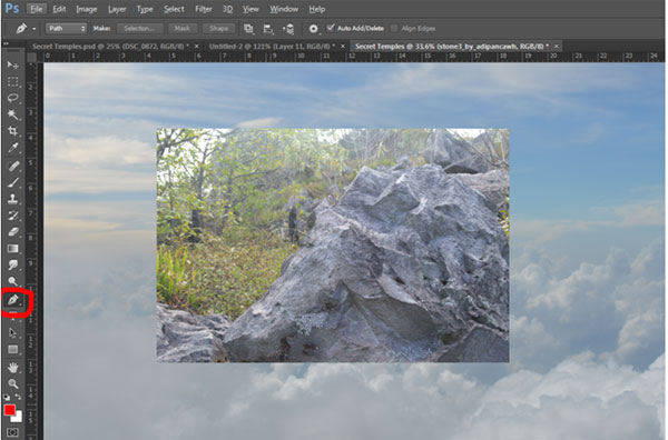 Создаём в Фотошоп таинственный храм в горах