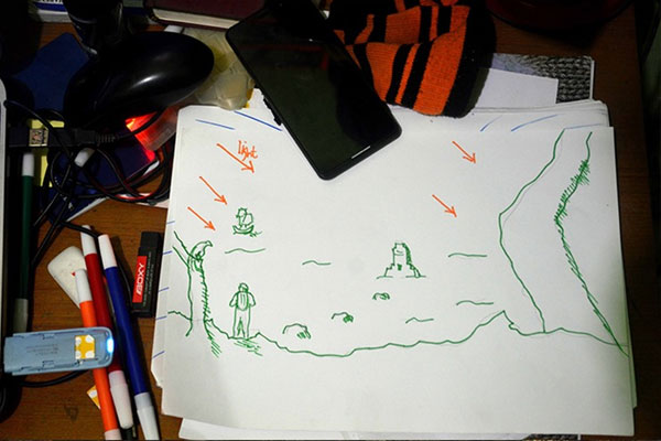 Для начала набросайте эскиз идеи на бумаге. Основываясь на этот набросок, мы будем выстраивать последовательность действий нашей работы. Кроме того, оформив, таким образом, идею, нам будет легче подбирать стоковые фото.