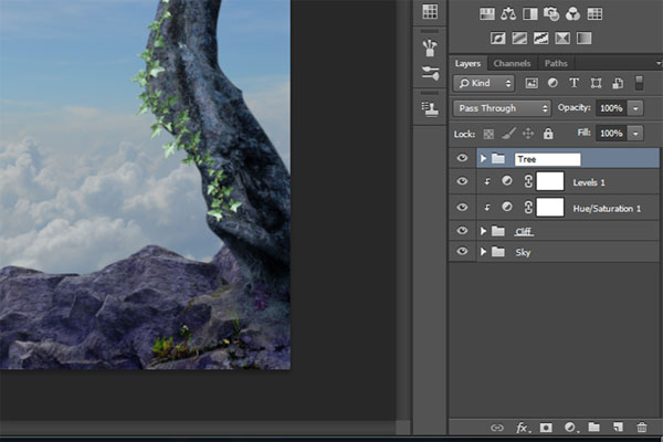 Теперь нам нужно разбить все слои по категориям, чтобы навести на палитре слоев некоторый порядок. Поэтому разбейте слои по группам с названиями: «Скалолаз и ворона», «Корабль», и «Камни».