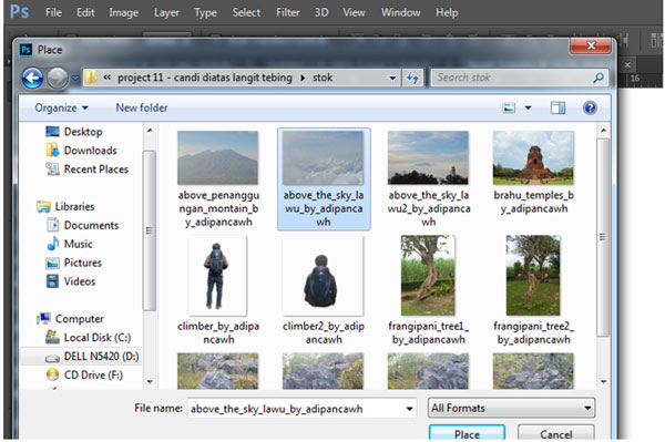 После того, как мы определились с содержанием композиции, можно подобрать для нее стоковые изображения, учитывая при этом их перспективу и освещение. Вот, например, несколько фотографий, сделанных лично мной во время моего путешествия по горам Индонезии.