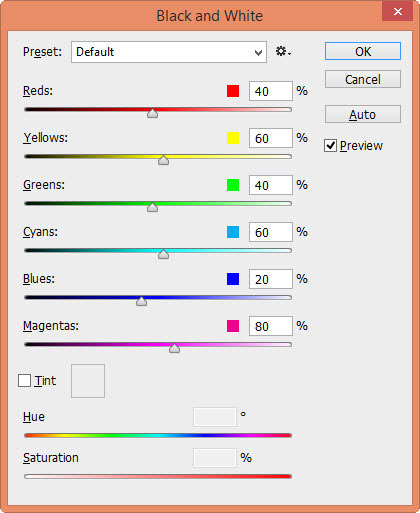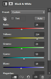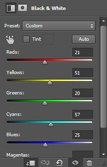 К слою с каменной текстурой добавьте корректирующий слой Черное и белое (Black and White):