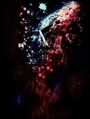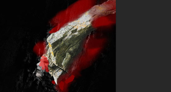 Вокруг каменной текстуры добавьте эффект брызг при помощи кистей с брызгами (найдите самостоятельно в Интернете).
