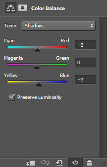 Добавьте также корректирующий слой Цветовой баланс (Color Balance):
