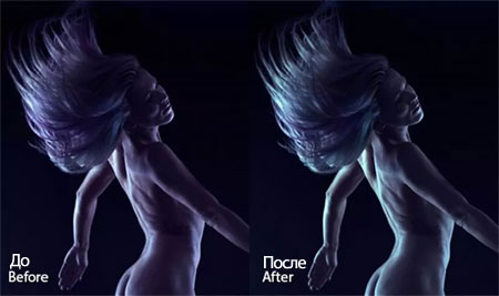 На скриншоте ниже вы можете сравнить волосы и лицо модели До и После проведения коррекции.