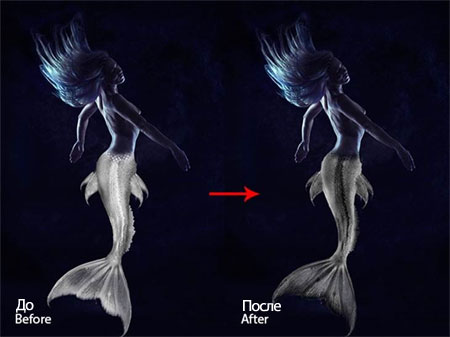 На скриншоте ниже вы можете сравнить, как будет выглядеть ваше изображение До и После проведения данной коррекции. Намного лучше, не правда ли?