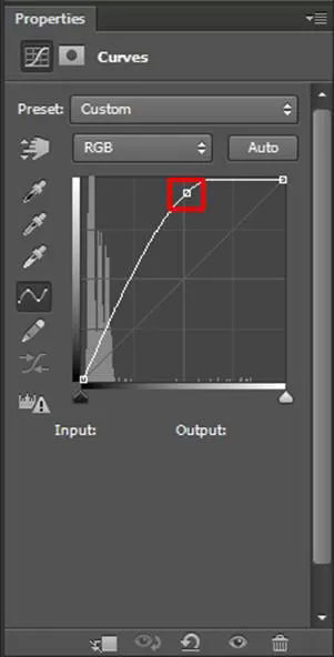 Добавьте новый корректирующий слой Кривые (Curves) поверх всех остальных слоёв. Установите кривую, как показано на скриншоте ниже.