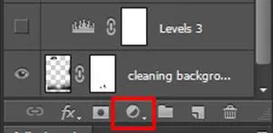 Добавьте новый корректирующий слой Уровни (Levels) поверх всех остальных слоёв. Данный корректирующий слой можно создать через нижнюю панель инструментов нажав кнопку Создать новый слой-заливку или корректирующий слой (Create new fill or adjustment layer).