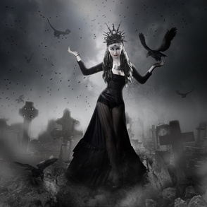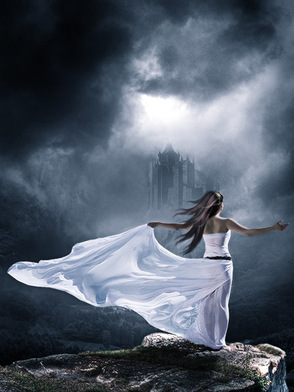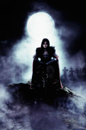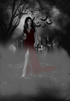 Вставьте на рабочий холст изображение с кладбищем и луной Layer 3. С помощью инструмента Dodge Tool