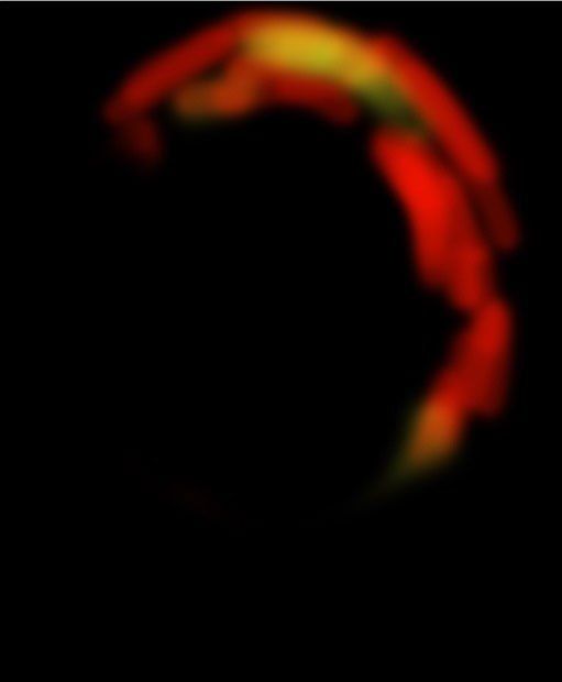 Создайте новый слой поверх слоя текстурой искр. Залейте этот слой чёрным цветом. Далее, поменяйте режим наложения для данного слоя на Осветление основы (color dodge). Выберите мягкую круглую кисть непрозрачностью примерно 5%. Находясь на новом слое, прокрасьте белым, жёлтым, оранжевым оттенком, тем самым, добавляя световые блики к изображению модели.