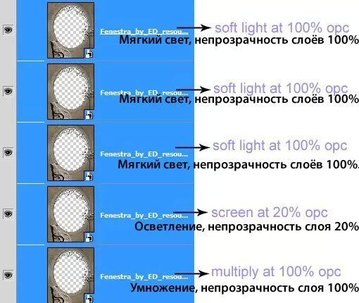 Далее, мы изменим цвет стены. Для этого мы просто продублируем четыре раза оригинальное изображение. Поменяйте режим наложения для оригинального слоя на Умножение (multiply), непрозрачность слоя 100%, для первого дубликата слоя на Осветление (screen), непрозрачность слоя 20%, для остальных трёх дубликатов на Мягкий свет (soft light), непрозрачность слоёв 100%. В заключение, выделите все слои, а затем нажмите клавиши (Ctrl+G), чтобы сгруппировать их в одну группу. Я назвал эту группу ‘Стена’.