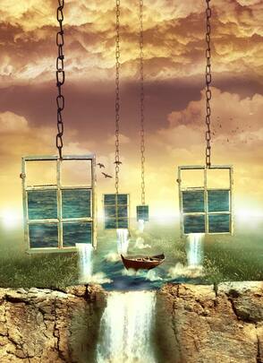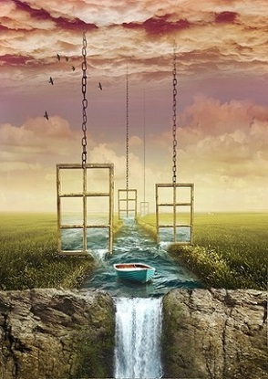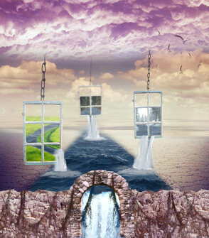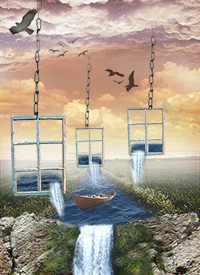 Сюрреалистический пейзаж с водопадом в Фотошоп