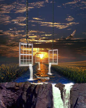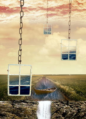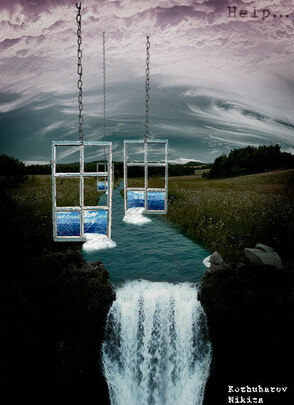 4) Нижняя часть вообще не подходит, если ее обрезать то картинка не хуже. Когда делают (например) такой же переход, скажем, в водосточную трубу, там это уместней т.к. видно что это коллаж, здесь же автор пытается это сделать реалистичным, но у него не получается. Я от водопада и стенки получил только опыт по режимам наложения и работе с масками слоя.