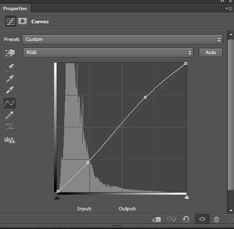 К слою с небом, добавьте корректирующий слой Кривые (curves) через нижнюю панель инструментов. Примените кривую, как показано на скриншоте ниже.