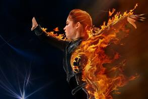 Как и где вы будете размещать огонь на своём изображении – это будет на 100% зависеть от вас. Я предлагаю начать создание эффектов на краях изображения модели или объекта. Я подобрал текстуру огня с небольшими языками пламени. С помощью трансформации, я выставил угол текстуры под внутреннюю часть руки.