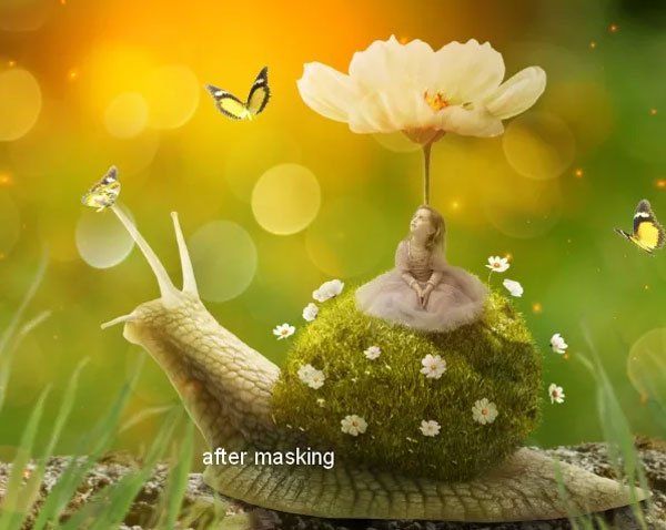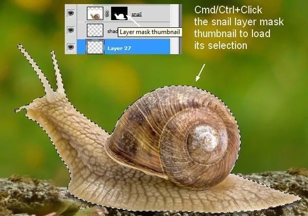 Вставьте улитку в наш документ, отделив её от фона используя маску слоя.