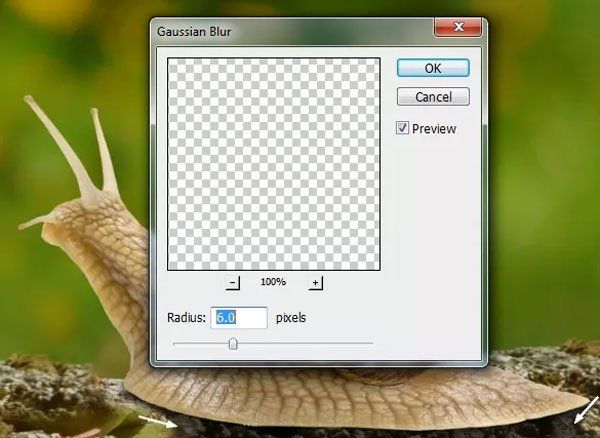 Смягчите тень при помощи фильтра Размытие по Гауссу (Фильтр > Размытие > Размытие по Гауссу) (Filter > Blur > Gaussian Blur) со значением 6 пикселей.
