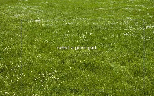Откройте фотографию зелёного поля. Инструментом Прямоугольная область (Rectangular Marquee Tool) (M) выделите часть травы и перенесите в основной документ.