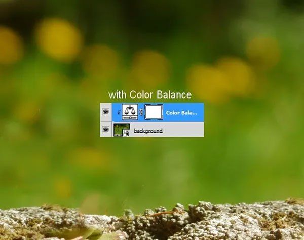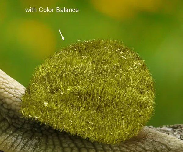 Измените цвет травы корректирующим слоем Цветовой баланс (Color Balance).