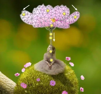 В режиме Марионеточная деформация (Puppet Warp) выровняйте стебель и поправьте лепестки, сделав их расположение более симметричным.