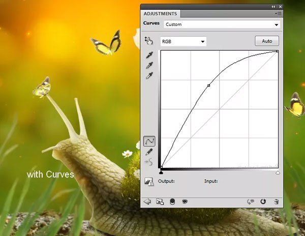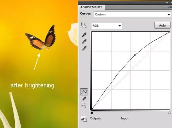 Осветлите бабочку в середине корректирующим слоем Кривые (Curves).