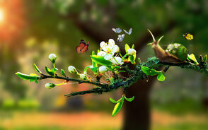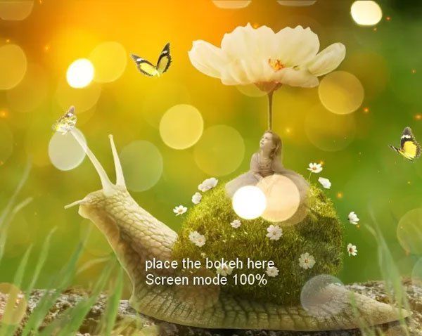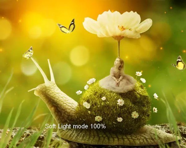 Мы начнем этот урок с создания заднего фона, размыв и очистив его, используя базовые инструменты Photoshop. Затем мы добавим улитку, при этом превратим её панцирь в лужайку, на которую посадим девочку, цветы и бабочек. Объединим все изображения в единую композицию, используя корректирующие слои, маскирование и кисти. После этого мы добавим световые эффекты и боке текстуры для придания соответствующей атмосферы. В конце урока мы применим несколько корректирующих слоев. Я рекомендую вам использовать Photoshop CS5 или новее для выполнения этого урока.