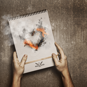 Откройте все исходные изображения в программе Photoshop. Скопируйте / вклейте исходное изображение гитары в огне, расположив данное изображение поверх изображения с записной книжкой.