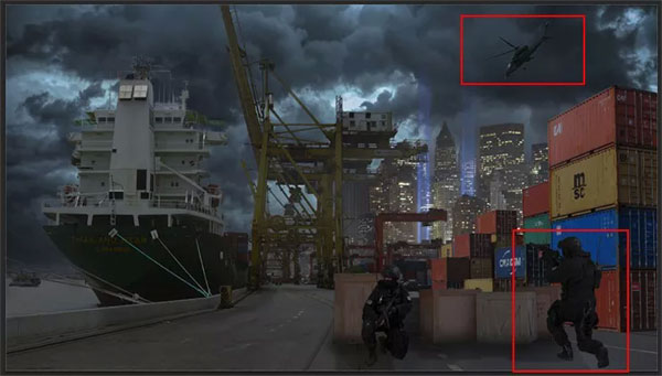 ОК, мы начнём урок с создания нового документа, далее, мы добавим изображение морского порта, контейнеров, города, а также поменяем небо. Всё это совместим вместе, включая ещё несколько основных деталей. Далее, мы перейдём к спецназу и военной технике. На следующем этапе урока, мы поработаем над реалистичным освещением, а также над настроением всей картины. В заключение, мы добавим эффекты и применим фильтр для усиления резкости. Не важно, какую версию программы Photoshop вы используете, вы сможете выполнить данный урок.