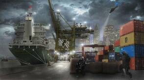 Поместите изображение с небом ниже слоя с контейнеровозом. Примените масштабирование в соответствии с размерами рабочего документа.