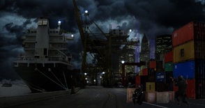 Проделайте то же самое с городом в левой части изображения, а также обработайте центр изображения, где небоскрёб расположен рядом с краном (здесь я уменьшил значение Заливки (Fill) до 71%). Таким образом, мы создали затуманенный город, который хорошо сочетается с морским портом и небом. Согласно концепции моей картины, суровая погода должна передать настроение и опасность ситуации.