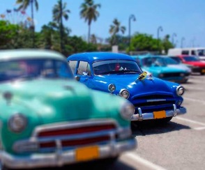 Для нашей последней иллюзии, мы выделим синий ретро автомобиль на исходном изображении путём фронтального размытия и размытия заднего фона всей сцены. С помощью инструмента Рамка