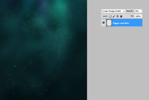 Создайте новый слой. С помощью кисти Искры, добавьте пузырьки в центре изображения. Я использовал светло-зелёный оттенок. Не переусердствуйте с количеством пузырьков, так как эффект может выглядеть некрасиво.