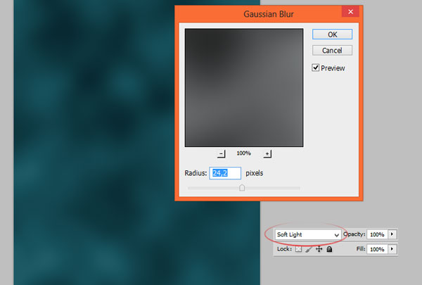 Применим Фильтр – Размытие – Размытие по Гауссу (Filter > Blur > Gaussian blur). А затем поменяйте режим наложения для слоя с облаками на Мягкий свет (Soft light).