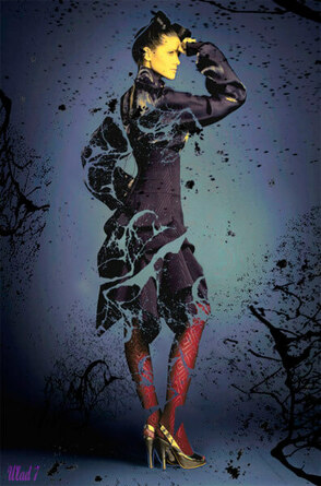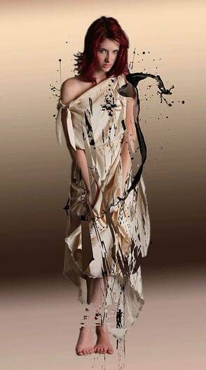 Разместите больше мелких брызг над слоем с моделью, чтобы придать изображению трехмерный вид, будто краска есть и на ее теле, а не только сзади. Я также добавил брызги на те области, которые я не стер в Шаге 10, например, на лицо и одежду.