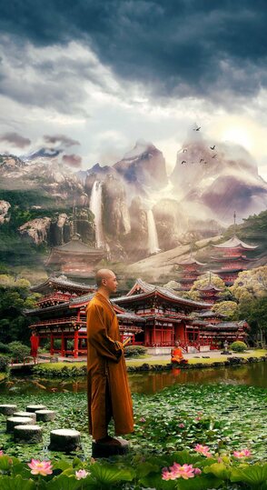 Вначале мы создадим передний фон, используя изображение храма, а также цветки лотоса. В следующей части мы добавим башни и создадим переходы между ними. Далее, мы создадим сюрреалистический горный пейзаж, а также добавим цветовые эффекты. В заключительном шаге, мы поработаем над световыми эффектами, а также создадим источник освещения. В завершение, мы применим корректирующие слои. Для выполнения данного урока, я использовал программу Photoshop версию CC 2014, но вы также можете воспользоваться любой версией CS.