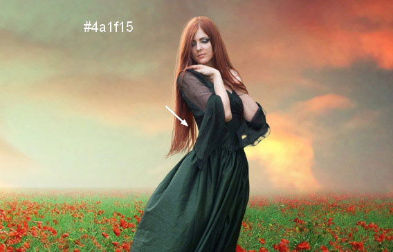 На отдельном слое, с помощью жёсткой кисти, цвет кисти #4a1f15, дорисуйте волосы к модели.